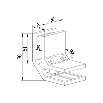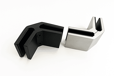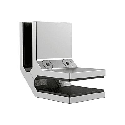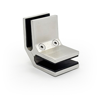 Attache 90° haute résistance en inox, conçue pour les coins soumis à de fortes contraintes. Garantit une fixation sécuritaire et durable du verre.