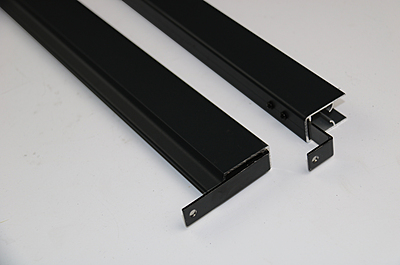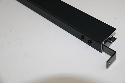 Traverse inférieure et supérieure en aluminium noir conçue pour les clôtures en composite. Assure une rigidité optimale, un alignement précis et une finition uniforme des panneaux.