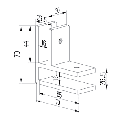 Attache 90° en acier inoxydable permettant la jonction en angle droit de panneaux de verre. Offre une finition nette et une stabilité fiable pour rampes, garde-corps et clôtures.